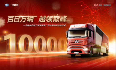4月15日,以“百日万辆 越领巅峰”为主题的一汽解放西部万辆解密暨广西扶南物流交车仪式于成都、南宁两地,线上、...