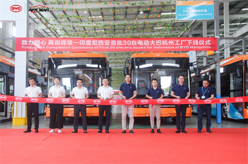 印度尼西亚首批30台比亚迪纯电动大巴于杭州工厂下线