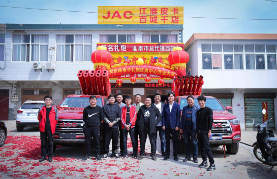 一个红色江淮风光车队 一道靓丽的皮卡风景线