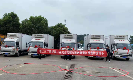 8月27日上午10点,5台江淮康铃冰博士冷藏车整齐划一排成一列,交付镇江亚夫江天城市配送有限公司。镇江亚夫江天...
