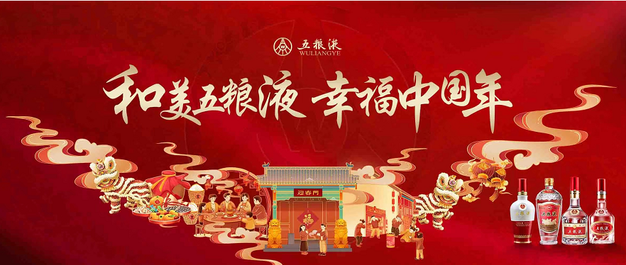 2023年伊始,五粮液就以“和美五粮液,幸福中国年”为主题,解开了五粮液元春攻势的序幕,展开了包括第八代五粮液焕新亮相、全国多地同步开展的“和美团圆宴”、39度五粮液和五粮液1618开瓶扫码活动、#聚五福星过五粮year抖音挑战赛等一系列活动。