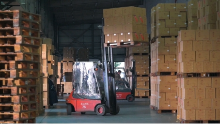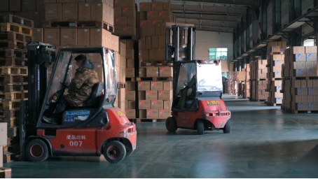 众所周知,白酒价值高,且大多以玻璃或陶瓷材质瓶装进行运输,易碎易破损,特别是春节、中秋两节旺季,发货需求猛增,大大加剧了对厂内物流仓储、出入库配送的作业需求,对于物料搬运设备的高效性和安全性提出极大的考验。洋河股份物流一部成品一科科长吴坚对林德叉车的效率性能深有体会:“在我们酿酒基地,使用的是林德电动平衡重叉车,双踏板系统和指尖控制手柄,让装卸操作更轻松便捷,宽视野的门架设计,转弯自动减速功能,承载货物更安全稳定。”简单的操作、精准的搬运,全方面助力洋河基地成品酒物流快速流转。