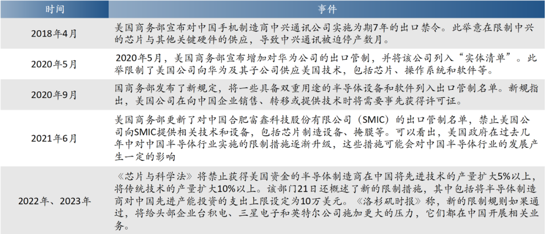 中国在半导体产业发展方面已经取得了一定的成就,但是美国不断出台政策对中国半导体芯片以及设备进行出口管制,对中国半导体芯片行业发展带来负面影响。