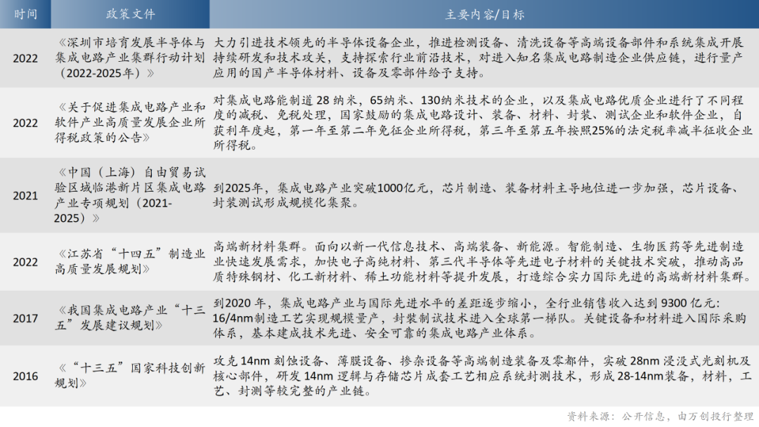 1)集成电路政策为半导体设备行业发展制造有利条件