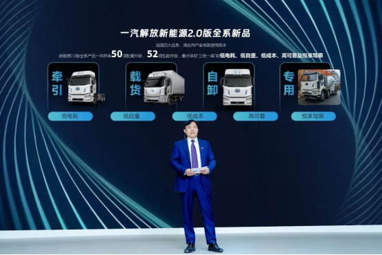 毋庸置疑,新能源赛道是商用车行业面向绿色发展的必由之路。在国家“双碳”目标的推动下,一汽解放抢抓新能源市场机遇,加速落实“15333”新能源战略。目前,解放已完成J7、JH6、J6L、J6F等重、中、轻、微、客全系列百余款新能源产品投放,成功实现了“传统车电动化”。