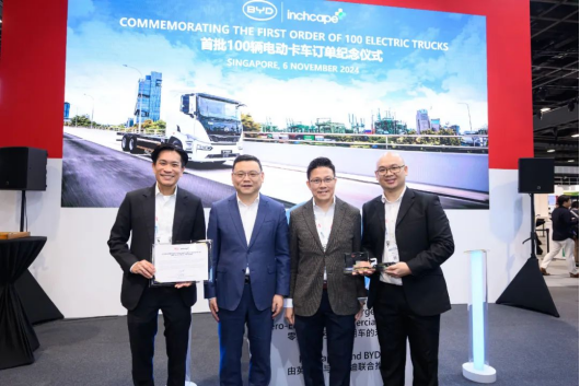 在展会现场,比亚迪T9R凭借其卓越的性能和可靠的质量,赢得了国际同行的高度评价,并获得了新加坡英之杰(Inchcape+)100台T9R电动卡车的大额订单。这是比亚迪在新加坡最大批量的单笔电动重卡采购,预计将在2025年第二季度交付。而得益于比亚迪商用车的强大实力和在新加坡市场的深厚积淀和多方面的努力,比亚迪电动重卡在新加坡市占率超90%,成为当之无愧的龙头企业。